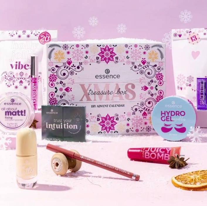 Vánoční adventní kalendář Essence Treasure Box DIY vnese dokonalou vánoční atmosféru přímo do vaší kosmetické rutiny! Tato sváteční krabička je nabitá 24 exkluzivními kosmetickými překvapeními: od objemových řasenek a lesklých paletek očních stínů až po produkty na rty, slavnostní laky na nehty a praktické kosmetické nástroje. Každý den odhalí nový produkt, díky kterému bude váš prosinec o něco kouzelnější.